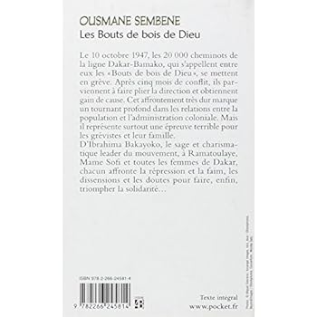 Récit se déroulant à une période post seconde guerre mondiale et durant la période coloniale française en Afrique subsaharienne.Ce livre nous plonge au c?ur du mouvement gréviste des cheminots sur la ligne Dakar - Niger, d'où nous vivons l'évolution et les turpitudes que rencontrera cette lutte.Au fil des pages, nous découvrons des grévistes déterminés à résister face à toutes les brutalités et les injustices dont ils sont victimes ; Dès lors chez le patronat, les masques tombent.Ce qui au départ avait été annoncé comme étant une lutte entre cheminots et leurs dirigeants, apparaît désormais comme une lutte entre deux classes : patron ?? ouvrier, voire riche ?? pauvre.Livre très bien écrit avec un style faisant ressortir le talent « Scénariste » de l??auteur, peut se présenter aux syndicats ouvriers comme une mise en garde sur la nécessité de s'unir face au patronat. En outre, ce livre suscite de profondes réflexions d??une part, sur le système politique à l??intérieur de nos Etats et d??autre part, sur les relations internationales entre Etat.Je le conseille vivement à toutes ces personnes engagées et à toutes ces personnes se qualifiant « Révolutionnaire » qui rêvent d??un ordre nouveau. Pour ces derniers, ce livre peut être une source intarissable de pistes de réflexion.
