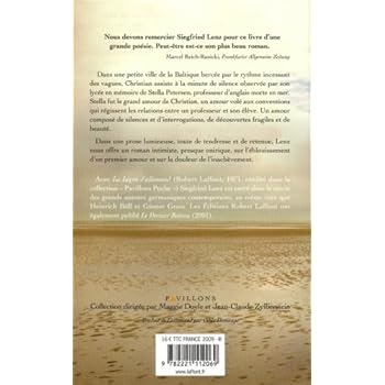 " Nous devons remercier Siegfried Lenz pour ce livre d'une grande poésie. Peut-être est-ce son plus beau roman. " Frankfurter Allgemeine ZeitungDans une petite ville de la Baltique bercée par le rythme incessant des vagues, Christian, dix-huit ans, assiste à la minute de silence observée par tout le lycée en mémoire de Stella Petersen, professeur d'anglais morte en mer. À la fin de la cérémonie, Christian vole la photographie de Stella : avec quelques cartes, c'est le seul souvenir qu'il puisse garder de leur amour. Un amour qui ne dura pas plus d'un été. Un amour ponctué par les sorties en mer, les arrêts à la cabane de l'île aux Oiseaux et les instants magiques dans les bras de la jeune femme. De Christian nous savons qu'il travaille avec son père à l'établissement d'un brise-lames souterrain, qu'il n'est pas un très bon élève et que Stella est son premier amour. De la jeune professeur nous savons encore moins. Christian fait des projets d'avenir dont Stella est le centre, mais Stella meurt, laissant tous les désirs, toutes les questions en suspens. Et c'est à ce mystère de l'inachèvement que s'attache Siegfried Lenz, dans une prose lumineuse conjuguant légèreté et précision, sensualité et sensibilité. Âgé de quatre-vingt-deux ans, il nous offre un roman intimiste, presque onirique, sur le thème de l'amour et du mystère des sentiments, de la mort et de l'oubli.